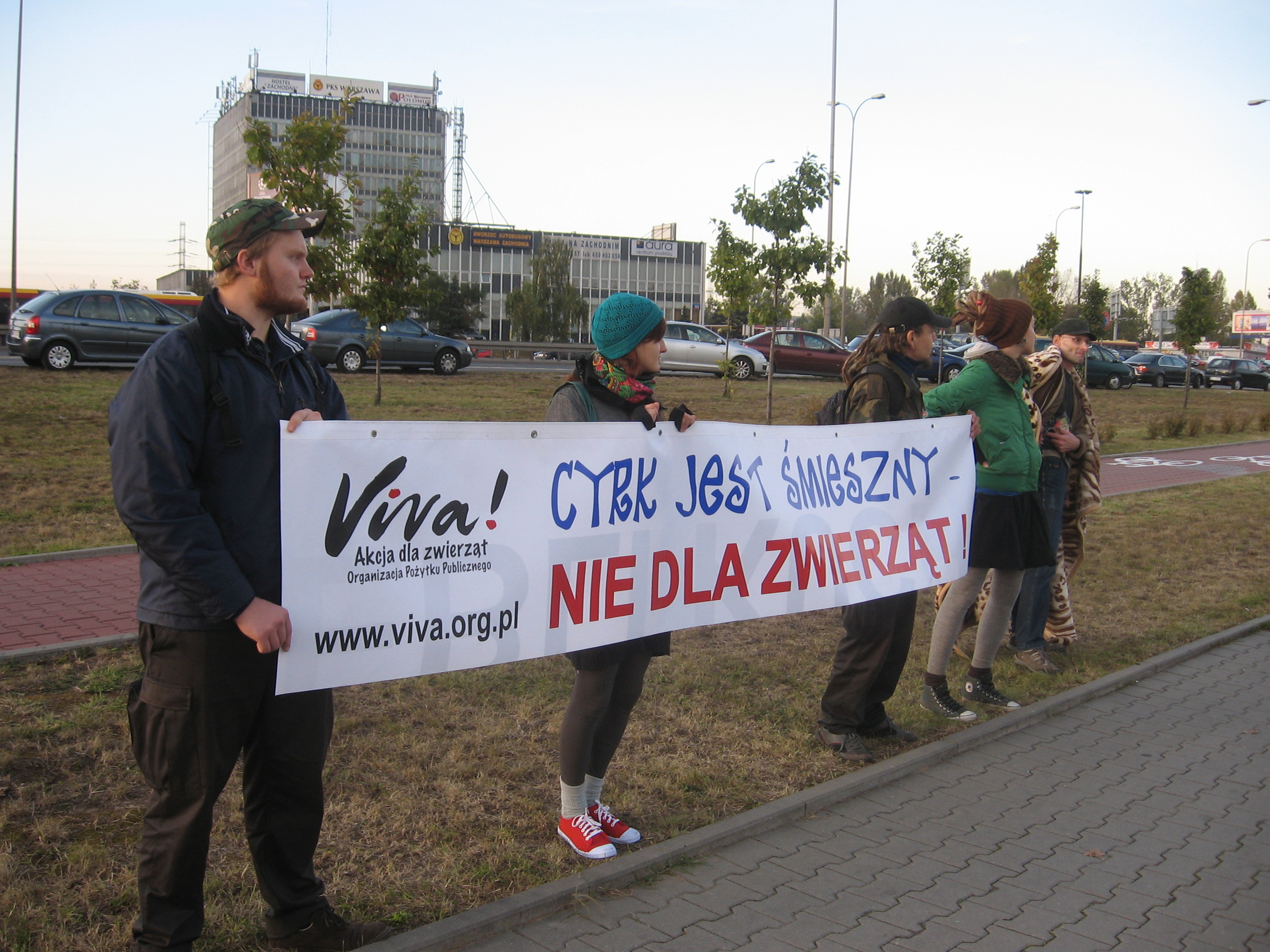 Cudowną transformację przeszły również siły porządkowe. Po zeszłotygodniowej przychylności w tym tygodniu spotkaliśmy się ze skandaliczną wręcz nieuprzejmością, przechodzącymi w arogancję, pyszałkowatość czy zwykłe chamstwo. Próby manipulowania godzinami zgłoszonych pikiet, ich delegalizacji, groźby podania do sądu grodzkiego za łamanie miru, za nielegalne zgromadzenie czy też domniemane blokowanie wejść były rzecz jasna absurdalne, niczym nieuzasadnione i miały na celu przede wszystkim zastraszenie przybyłych osób. Zachowanie to dziwi nieco mniej, gdy w kontekście umieści się obrazy wesoło witających się z policją ochroniarzy cyrku, funkcjonariuszy chroniących się pod daszkiem tegoż przybytku, oraz opuszczających jego teren przed kolejną pikietą.